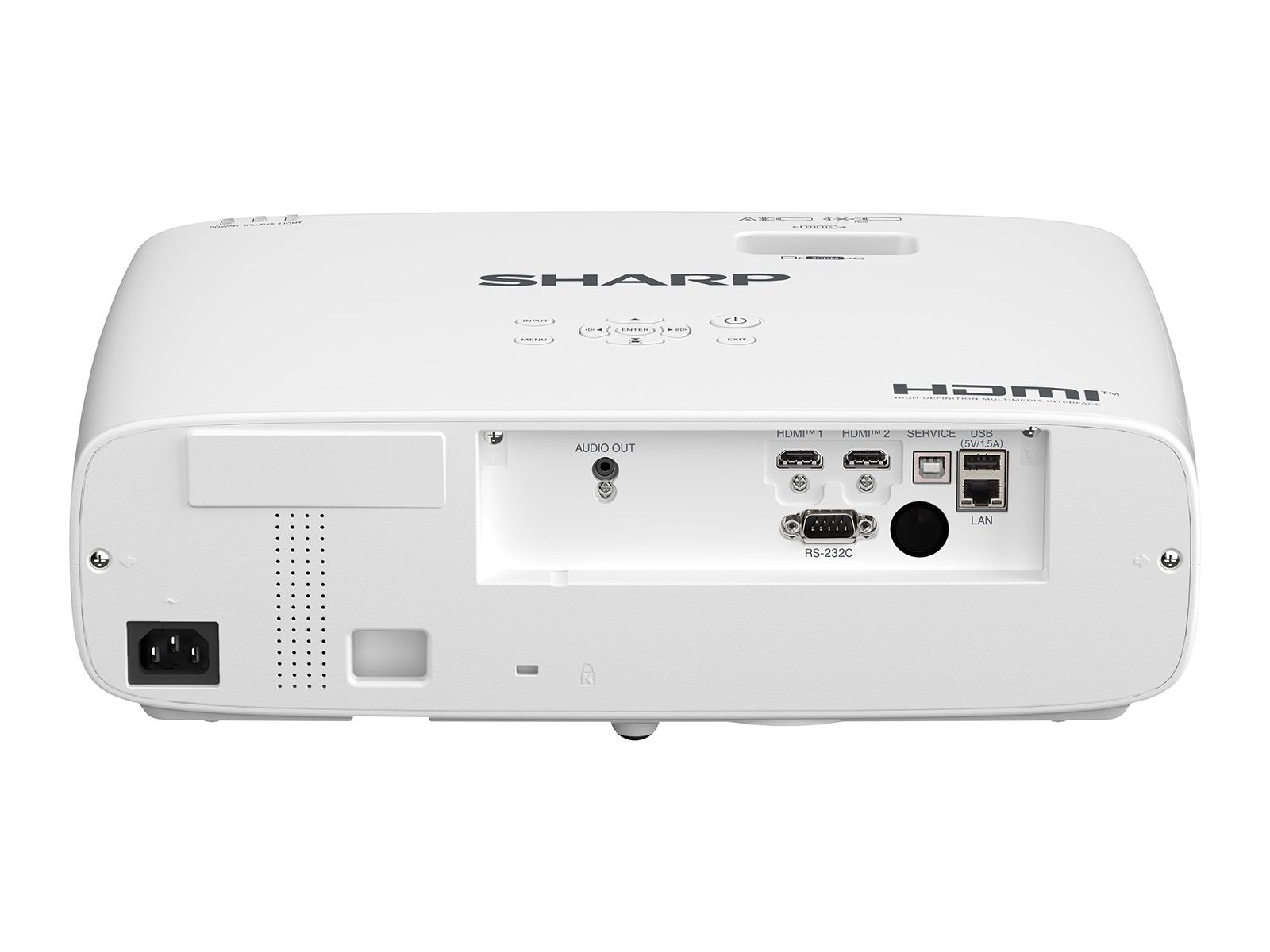 Sharp E501U. Luminosità proiettore: 5000 ANSI lumen, Tecnologia di proiezione: 3LCD, Risoluzione nativa del proiettore: WUXGA (1920x1200). Tipo di sorgente luminosa: Laser, Durata della sorgente luminosa: 20000 h. Messa a fuoco: Manuale, Lunghezza focale: 19.16 - 23.02 mm, Range di apertura (F-F): 1,6 - 1,76. Formato video analogico: NTSC 3.58, NTSC 4.43, PAL, PAL 60, PAL M, PAL N, SECAM. Tipo interfaccia seriale: RS-232