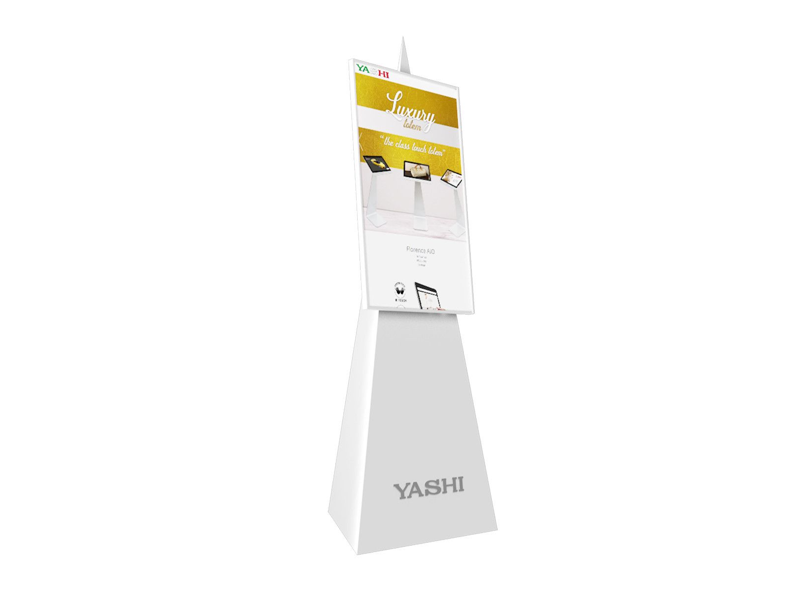 YASHI DY4307. Design del prodotto: Design totem. Dimensioni diagonale schermo: 109,2 cm (43"), Tecnologia display: LED, Risoluzione del display: 2160 x 3840 Pixel, Luminosità schermo: 450 cd/m², Tipologia HD: 4K Ultra HD, Touch screen. Colore del prodotto: Bianco