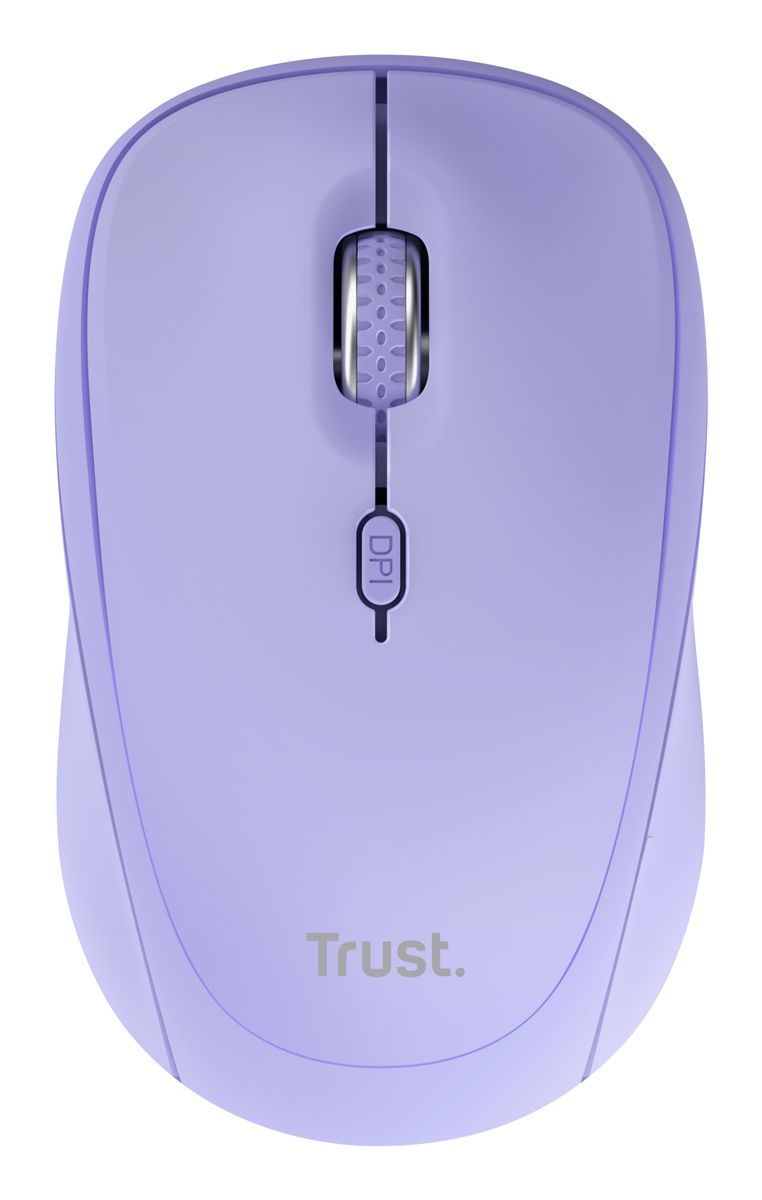 Trust Yvi+. Fattore di forma: Ambidestro. Tecnologia di rilevamento del movimento: Ottico, Interfaccia dispositivo: RF senza fili + Bluetooth, Risoluzione movimento: 1600 DPI, Tipo di pulsanti: Tasti premuti, Numero di tasti: 3, Tipo di scorimmento: Rotella. Alimentazione: Batterie. Colore del prodotto: Viola