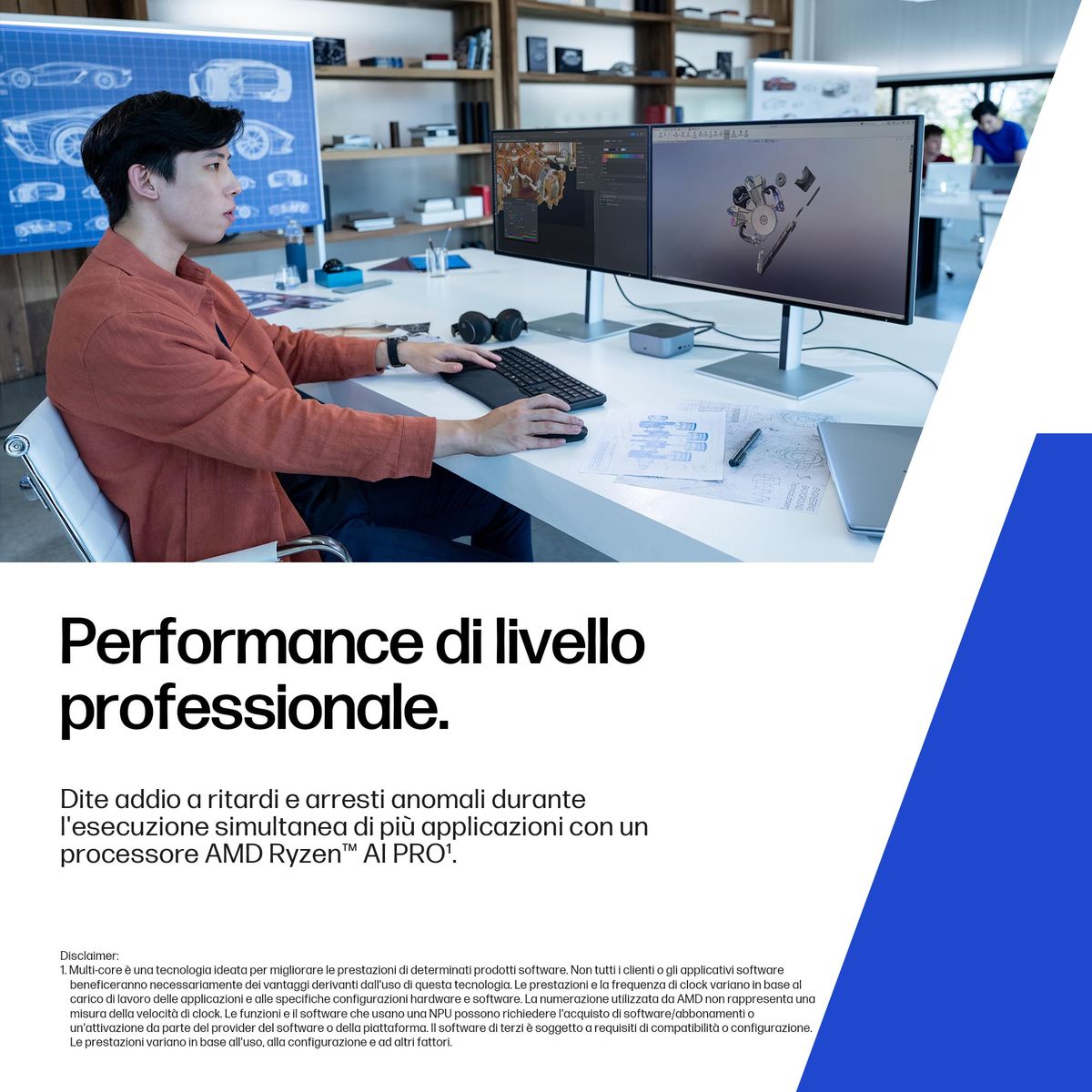 HP ZBook 8 G1ak 14 inch Mobile Workstation PC Wolf Pro Security Edition. Famiglia processore: AMD Ryzen AI 7 PRO. Dimensioni diagonale schermo: 35,6 cm (14"), Tipologia HD: WUXGA, Risoluzione del display: 1920 x 1200 Pixel. Memoria Interna: 32 GB, Tipo di RAM: DDR5-SDRAM. Capacità totale di archiviazione: 1 TB, Supporto di memoria: SSD. Modello scheda grafica integrata: AMD Radeon 860M. Sistema operativo incluso: Windows 11 Pro